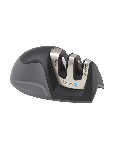 Edge Grip™ 2-Stage Knife Sharpener is lightweight, portable, and easy to use on either a flat surface or the edge of your countertop or table. Carbide blades and crossed ceramic rods feature pre-set sharpening angles that provide the proper sharpening angle every time. Carbide blades (Coarse) provide quick edge setting capabilities, and the ceramic rods (Fine) are used for the final edge honing. These two stages offer the capability to put a razor sharp edge on very dull or damaged blade and touch up already sharp blades. It comes with non-slip rubber feet and a soft grip rubber handle for comfort and steadiness when sharpening. The patented V-Grip™ bottom allows for added stability and comfort when using the sharpener on the edge of your countertop or table.