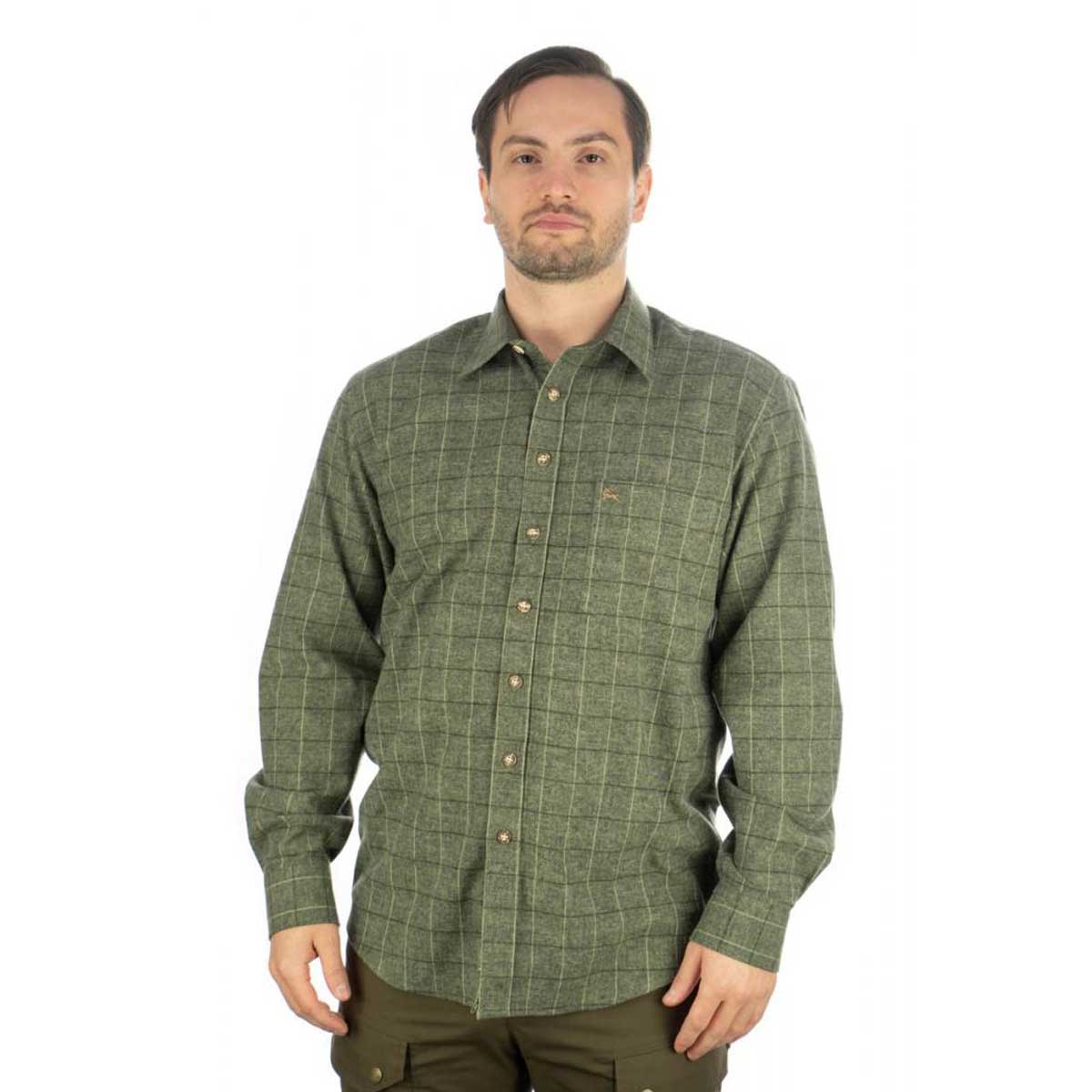 Srajca iz tople mehke flanele za hladnejši dni. Ima motiv jelena na prsnem žepu ter gumbe v imitaciji roževine.