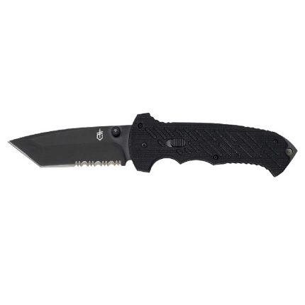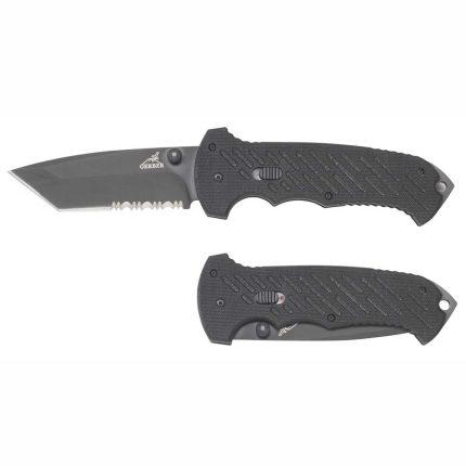 Gerber Strongarm Coyote Brown Serrated je vojaški nož z delno nazobčanim rezilom. Na spodnjem delu noža je konica za razbijanje stekla. Teksturiran ročaj zagotavlja dober oprijem v vseh pogojih. Nož Strongarm pride v kompletu s tokom, kiga lahko pritrdite na pas na več načinov.
