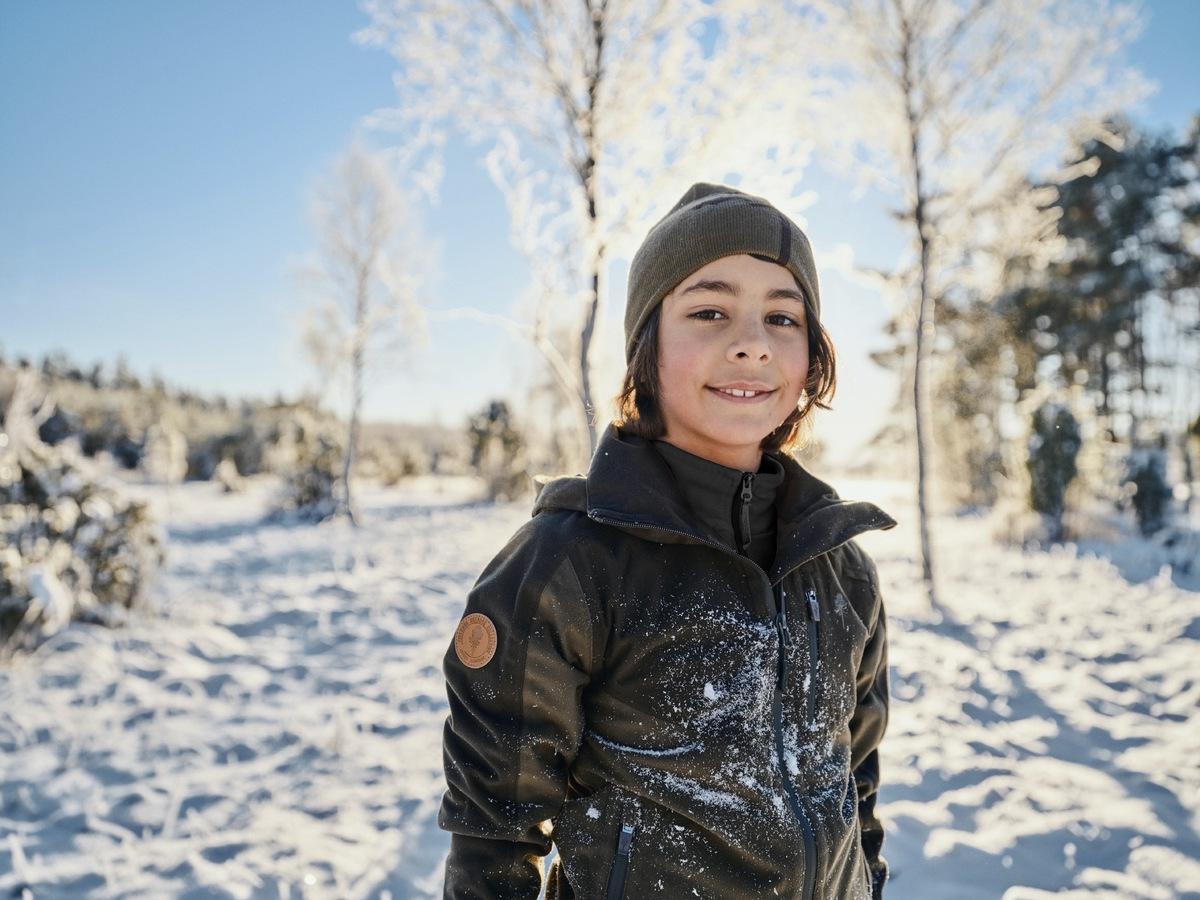 Jakna iz tihe tkanine za mlajše ljubitelje lovskih dogodivščin. Ima vetro- in vodoodporno membrano, ki diha.