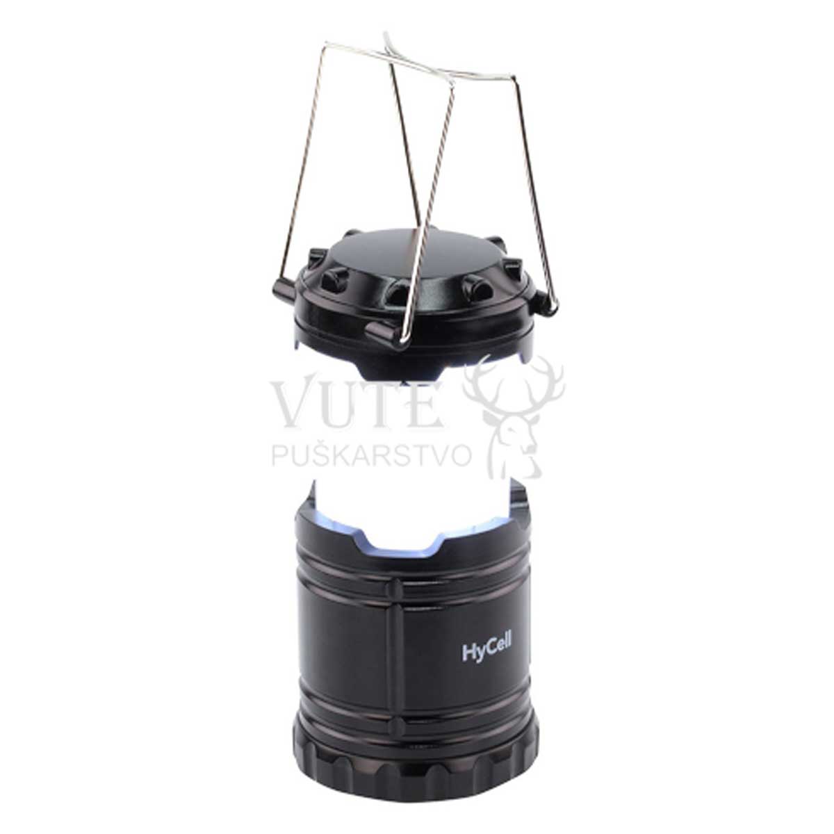 Prenosna LED svetilka HyCell je odlična za kampiranje ali druge aktivnosti na prostem, kadar potrebujemo umetni vir svetlobe. Svetilka je zelo enostavna za uporabo. Deluje brez posebnega stikala, potrebno jo je zgolj raztgniti in avtomatsko sveti. Ko je ne potrebujemo več, jo stisnemo skupaj in se sama izklopi. Za napajanje potrebuje tri AA baterije, sveti pa s pomočjo LED tehnologije. Ta omogoča, da ima svetilka manjšo porabo energije, kar posledično pomeni, da sveti dlje časa.